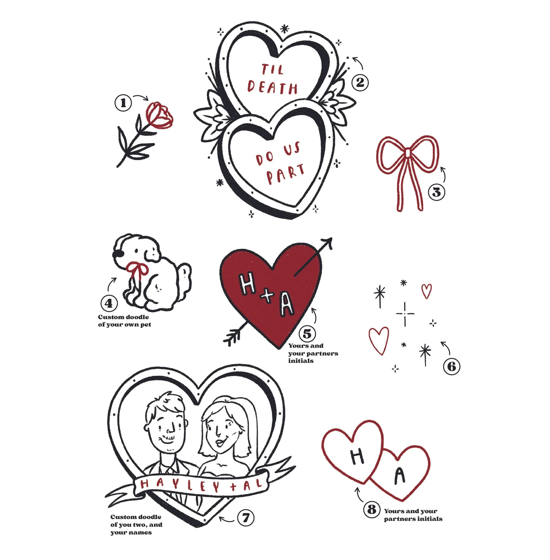 Wedding Bundle - Wedding Temporary Tattoos & A3 strut-mounted sign – 100 Pack, 4 Designs £55.00 Wedding Temporary Tattoos – 100 Pack, 4 Designs £40.00 Personalised Wedding Bundle - Personalised Wedding Temporary Tattoos & A3 strut-mounted sign – 100 Pack, 4 Custom Designs £75.00 Personalised Wedding Temporary Tattoos – 100 Pack, 4 Custom Designs £60.00